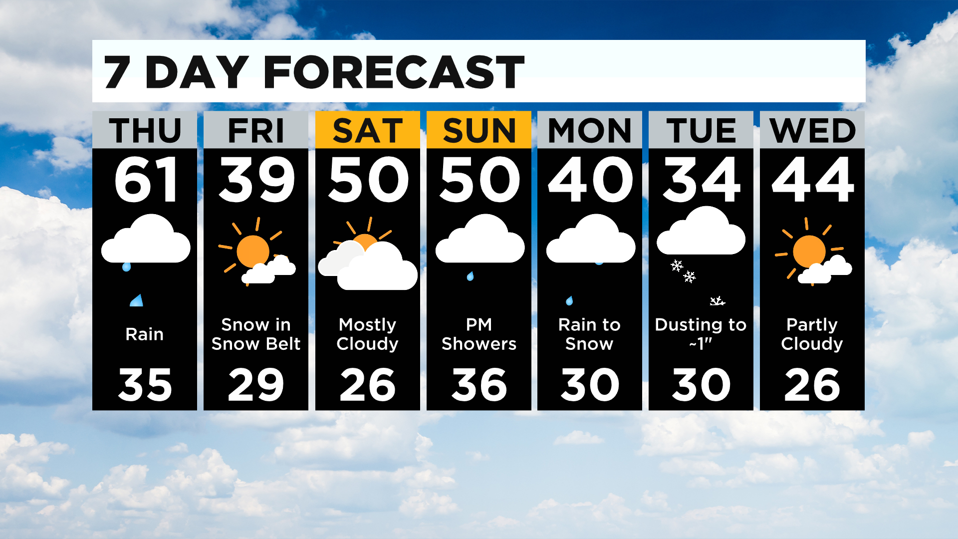 We are back to near 50 for the weekend for highs with morning lows in the mid-20s on Saturday and the mid-30s on Sunday.
