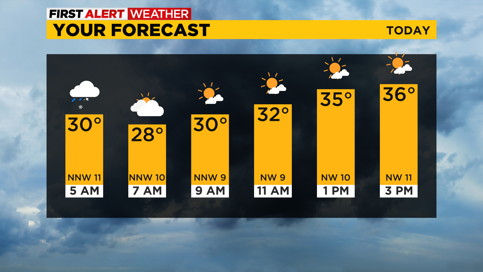 Right Now: Active weather is moving out, sunny for this afternoon with temperatures in the mid to upper 30s.