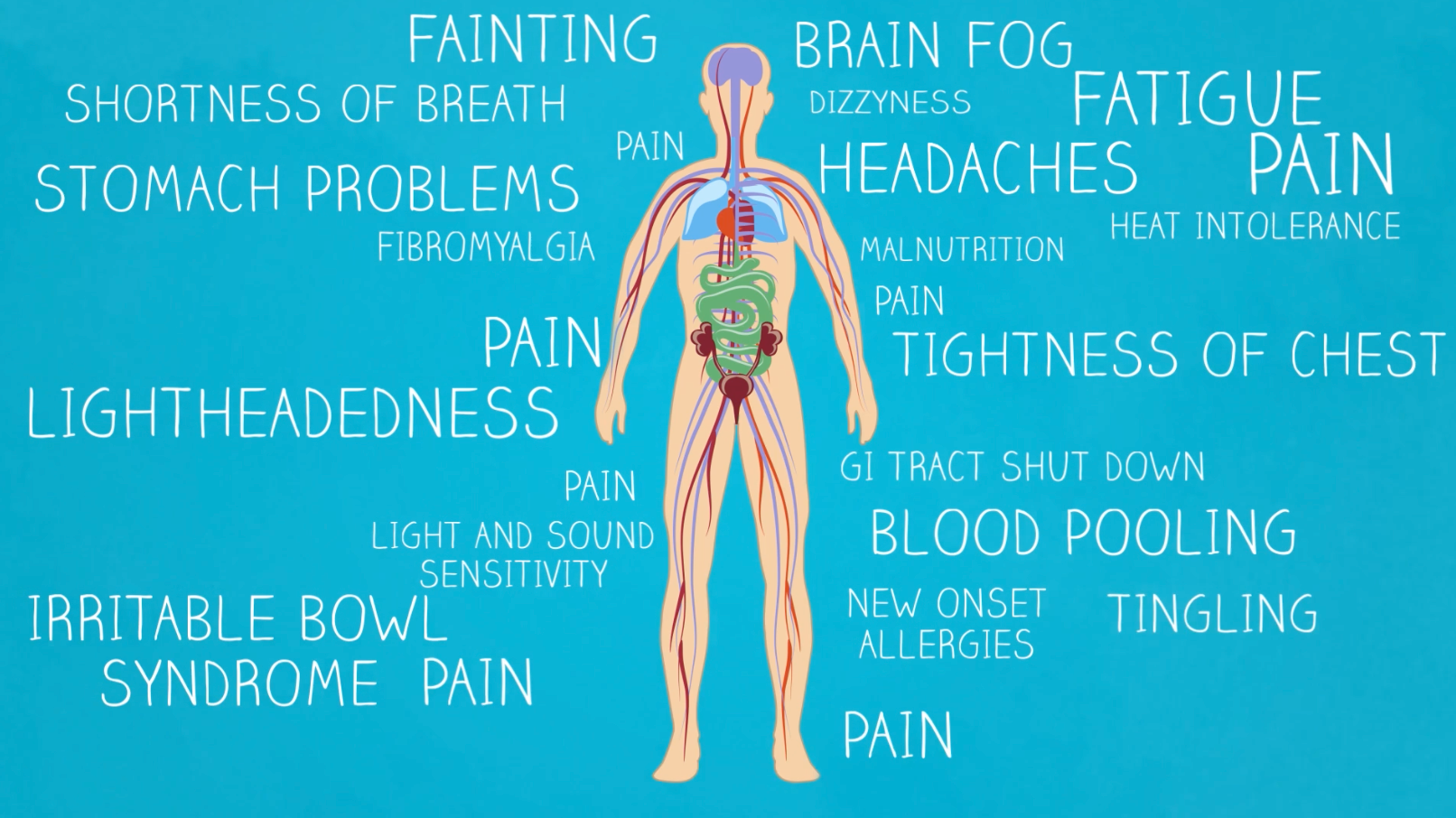 It turns out he now has POTS or "Postural Orthostatic Tachycardia Syndrome." It's a condition that quite literally puts you on your back.
