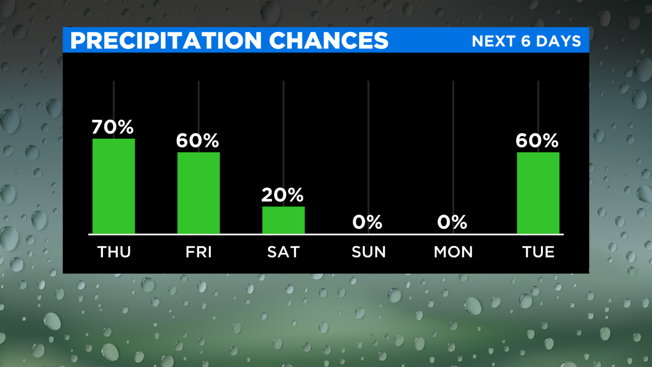 Highs on the weekend will just be in the 70s on Saturday then the 60s on Sunday.