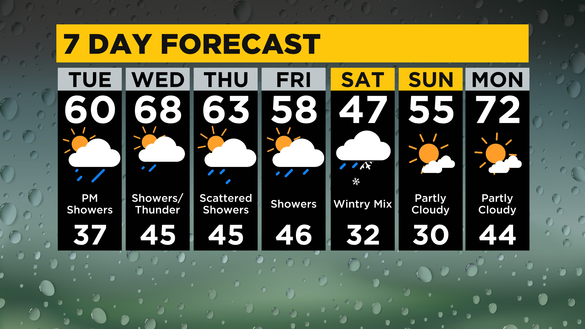 Wednesday highs will be near 70° with morning lows in the mid-40s.