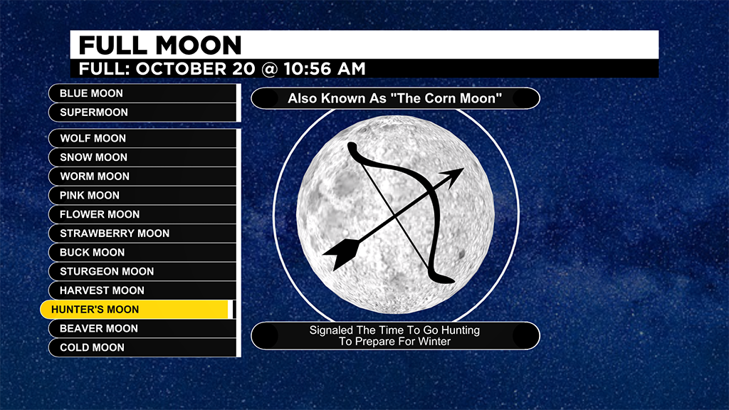 Tomorrow night, the full Hunter's Moon will peak at 10:56am, so you'll notice a full moon the next couple of nights.