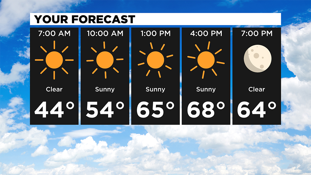 It'll be another clear night but not as cool with lows in the low 40's for Wednesday and highs possibly touching 70!