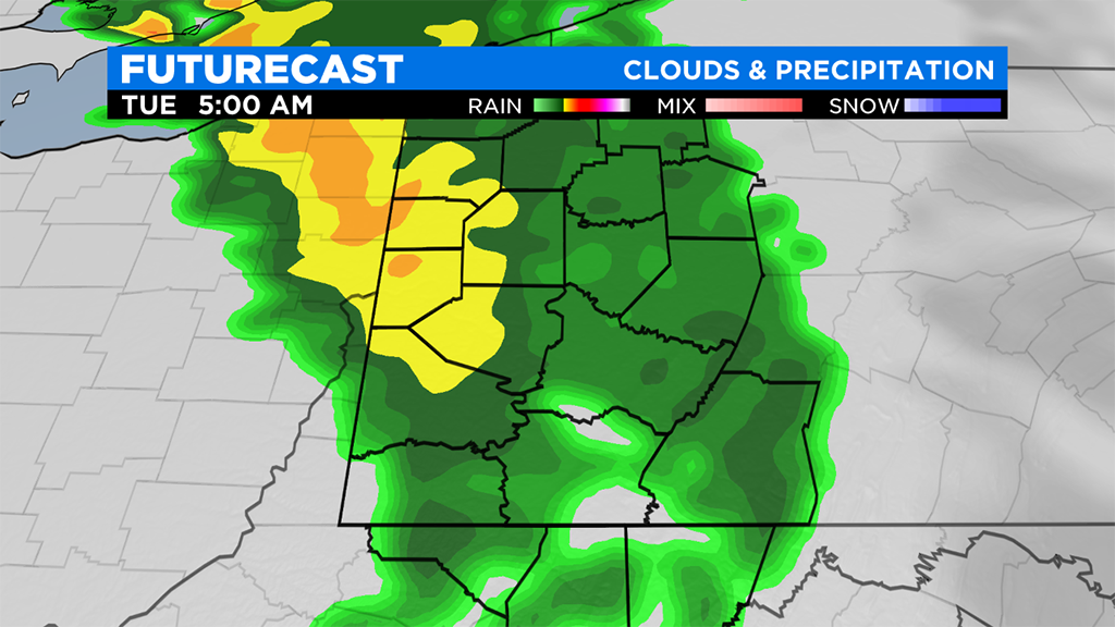 The quick hitter will bring rain and maybe even a weak storm or two to the area with peak rain chances likely being from around 3:00 a.m. until 8:00 a.m.
