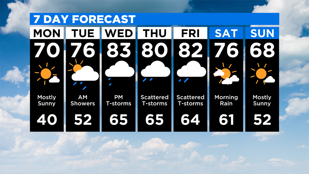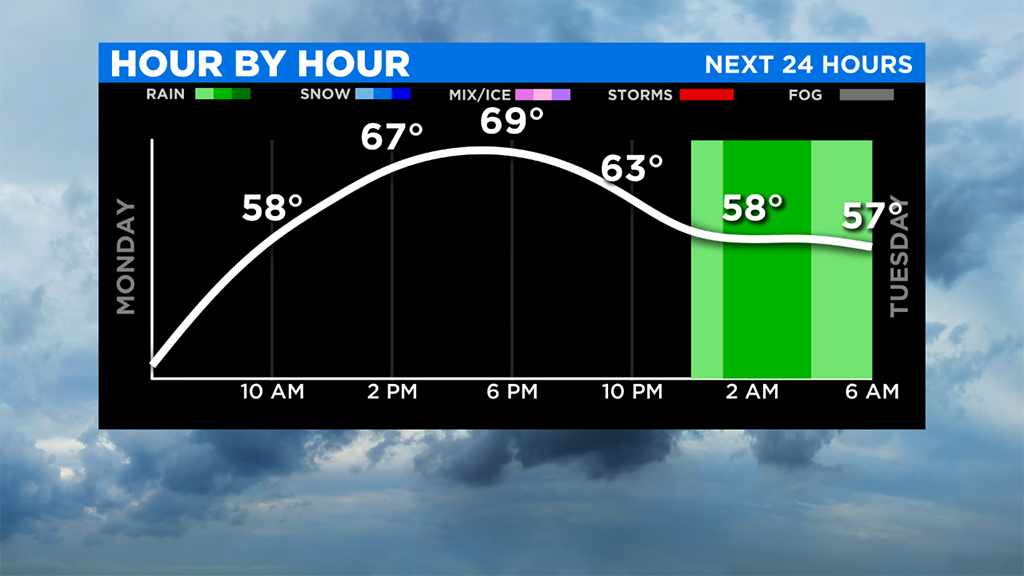 For today, we are looking at high temperatures nearing 70 degrees.