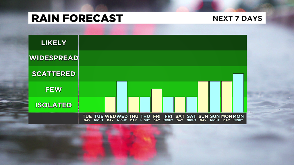 Wednesday looks to be the hottest of the week and our next best chance for storms will be Thursday.