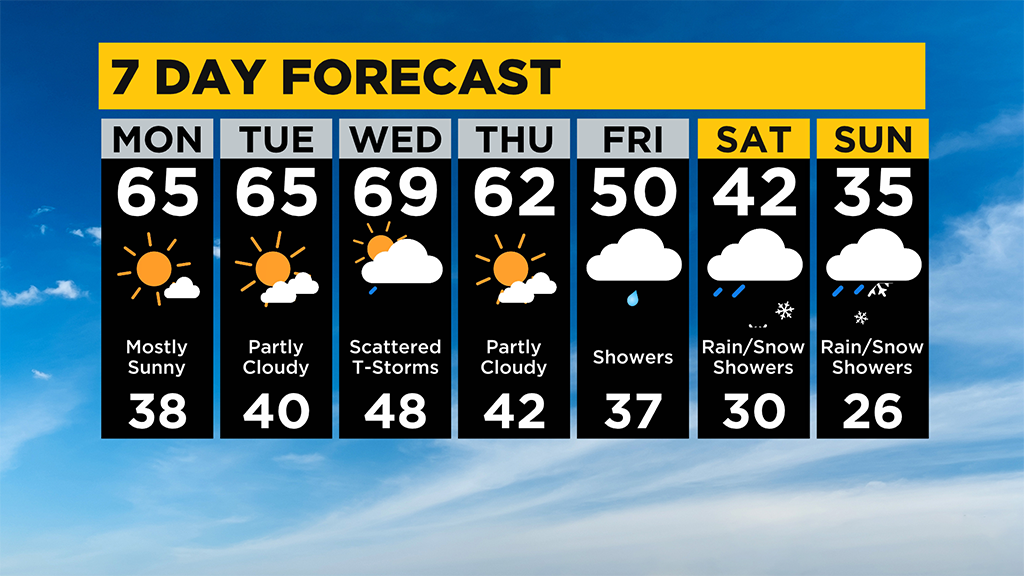 I have rain chances on Friday and Saturday in Pittsburgh with snow chances on Sunday.