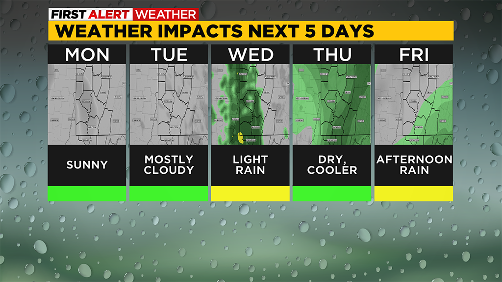 The next chance for rain arrives for most early on Wednesday morning and stick around for the day.