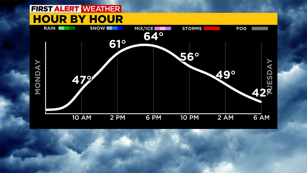 Highs today will be back in the mid 60's after just hitting 52 yesterday.