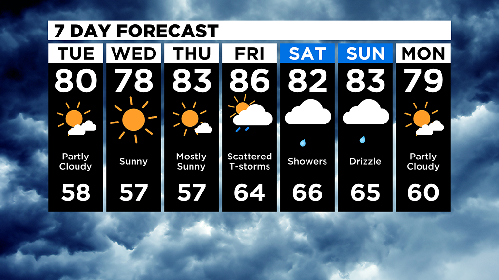 High temperatures should remain in the mid-to-low 80's over the weekend.