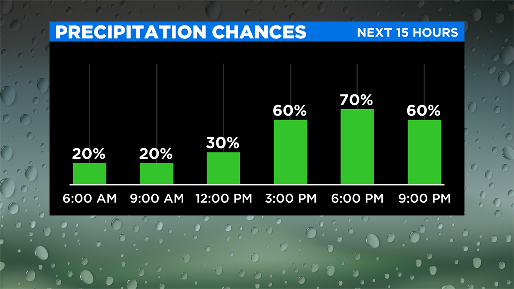 Sunday is looking wet from start to finish as a cold front is expected to once again slide through.