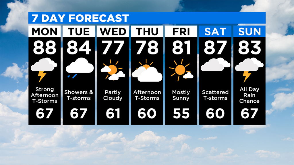 Cooler weather will filter in behind the front for Wednesday and Thursday before we return to the 80's for high temperatures on Friday and through the rest of the weekend.