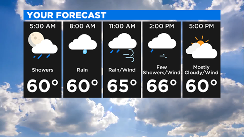 Today will be a busy weather day with high temperatures near 70 degrees again even with rain showers and storms around early.