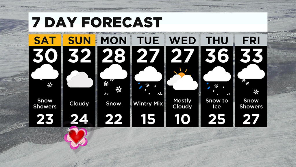 Another big thing is a refreeze Wednesday morning as lows look to drop near the single digits before we see the warmest day in a while on Thursday with highs in the mid to upper 30s but another wintry mix tracks through the region for the end of the week.
