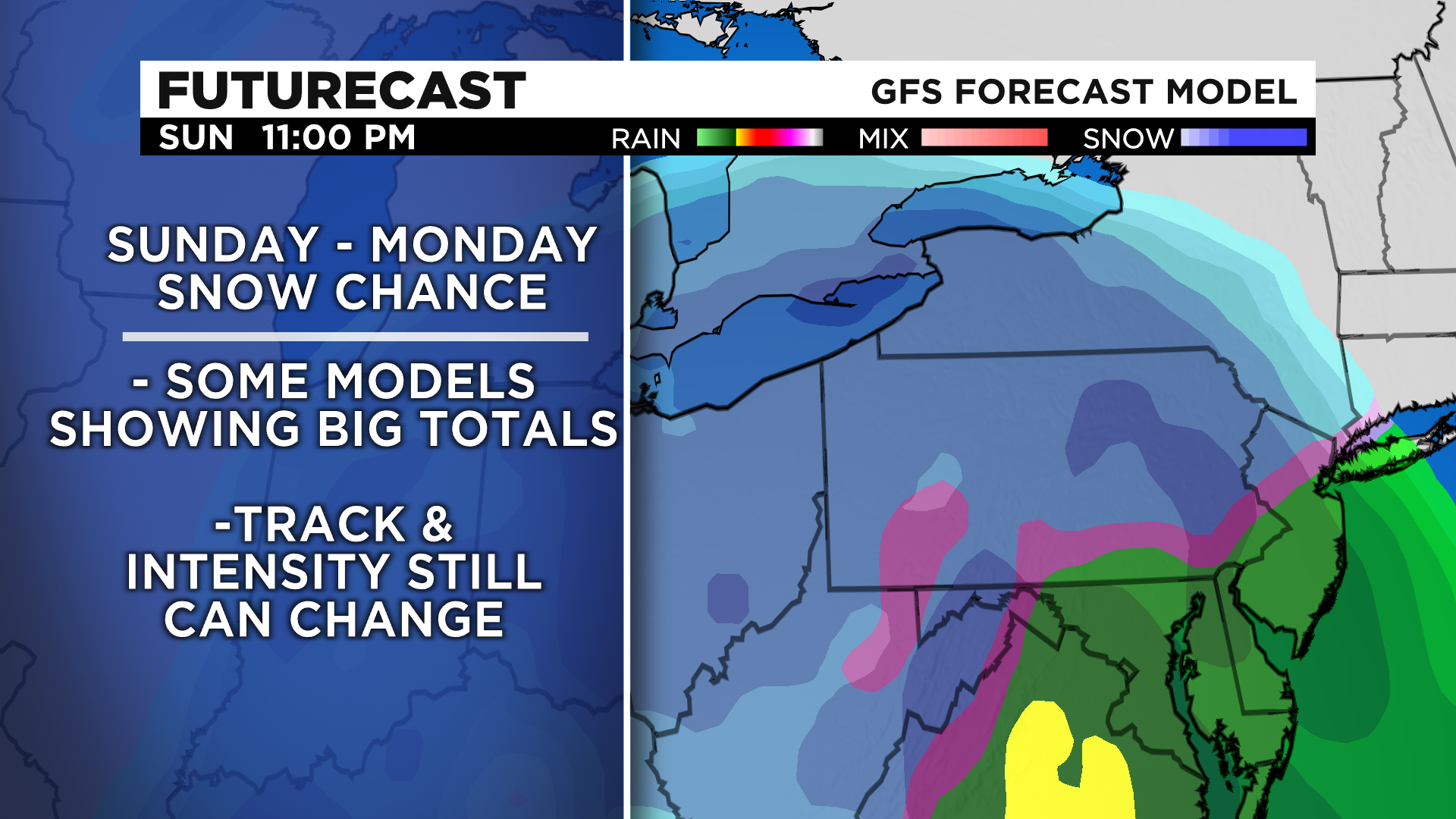 The track of heaviest snow may very well end up moving through parts of Western Pennsylvania. At this time it is too soon to have high confidence on the track though.