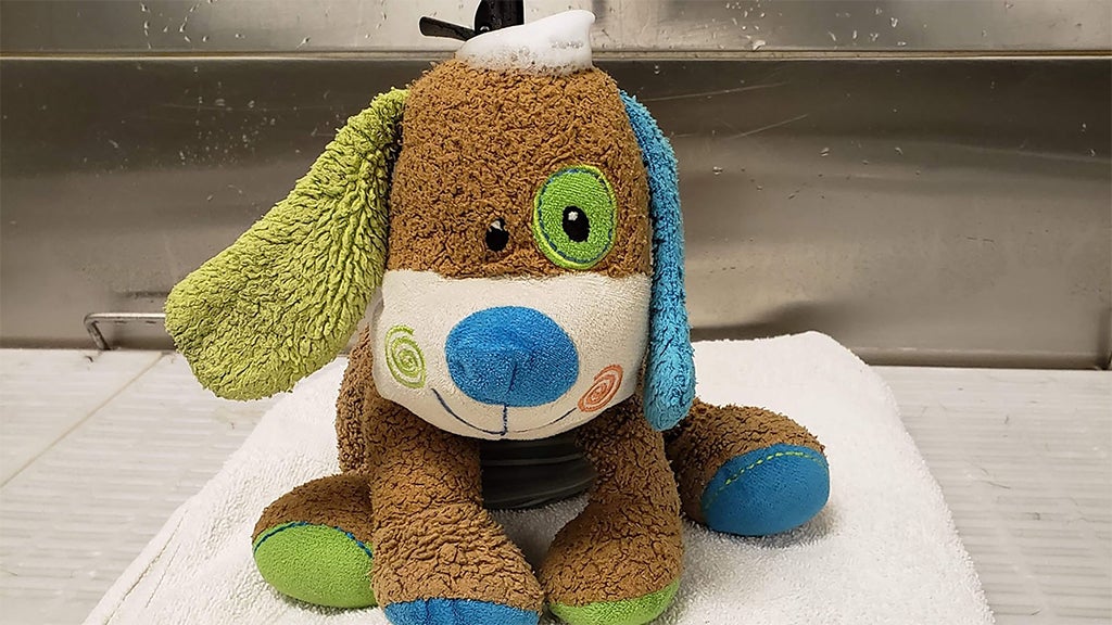 Then, she and Brundage came up with an idea. They didn't want Carter to worry about his "Stuffy-Puppy" -- so they decided to pamper the toy with a spa day which included a bubble bath and a good combing.
