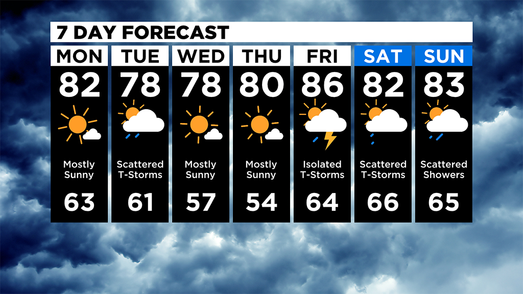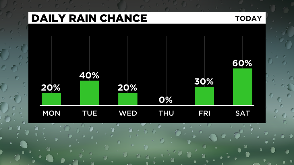 There is a better chance for rain on Tuesday afternoon with scattered storms expected.