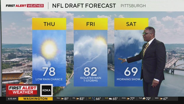 Stay on top of the weather in the Pittsburgh area with First Alert Meteorologist Ray Petelin's forecast, which includes up-to-the-minute information on the forecast for the 2026 NFL draft on Thursday.