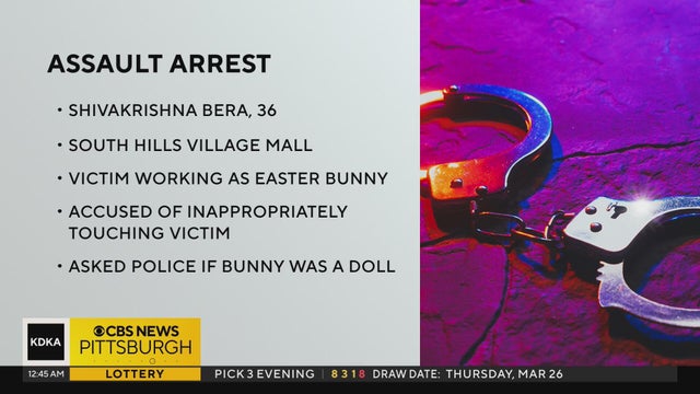 A New Jersey man is in custody and charged with indecent assault after inappropriately touching a woman dressed as the Easter Bunny at the South Hills Village Mall.