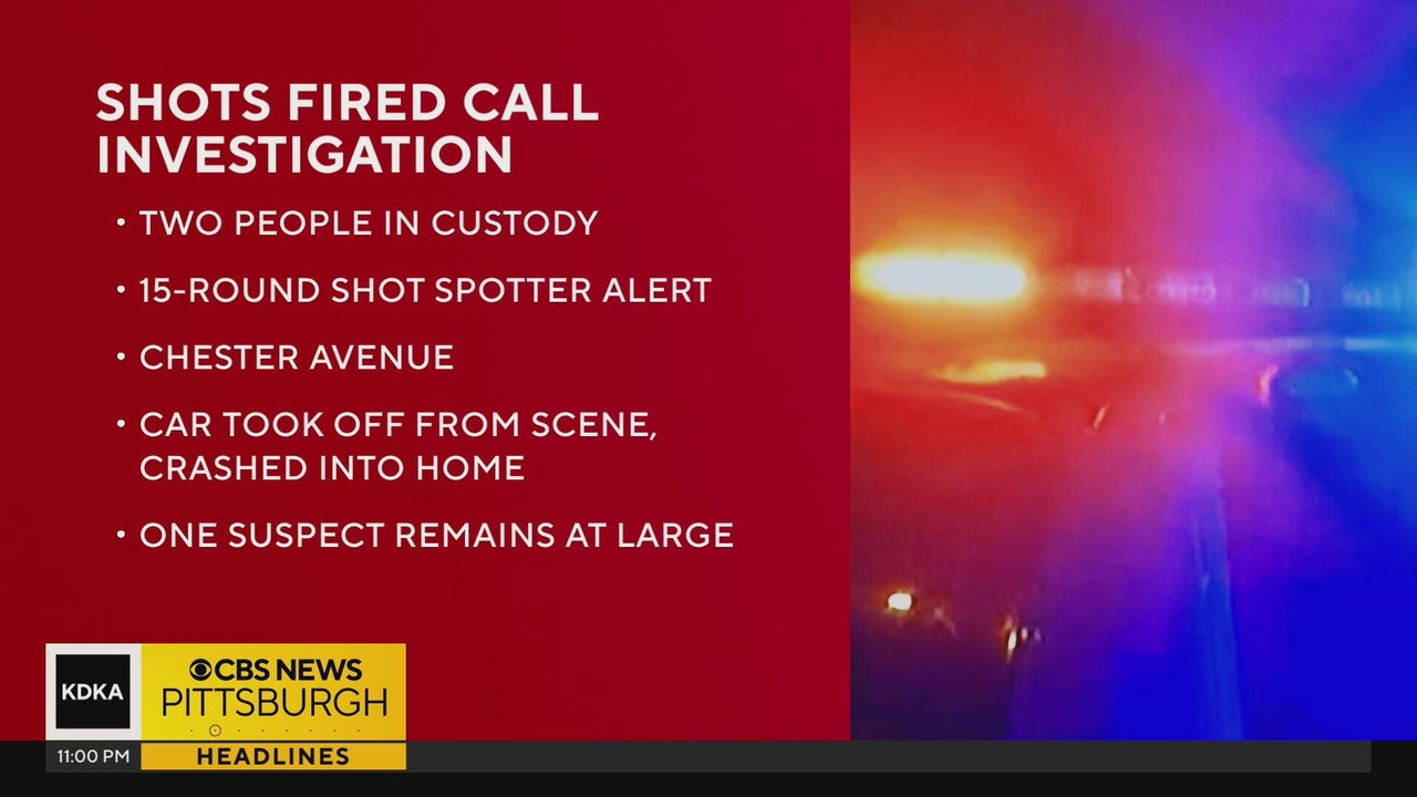 Two people were taken into police custody, while another is still on the run after a ShotSpotter alert led to a crash into a Pittsburgh home on Saturday night, police said.