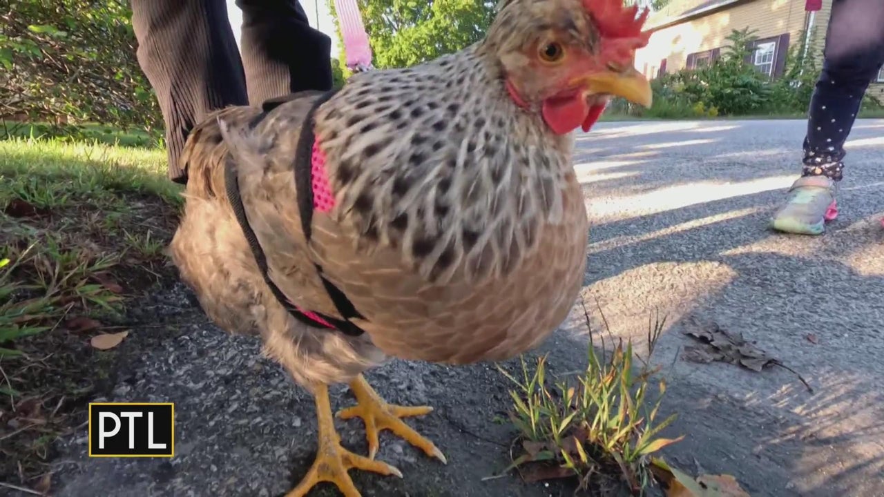 A pet chicken and a pet turkey