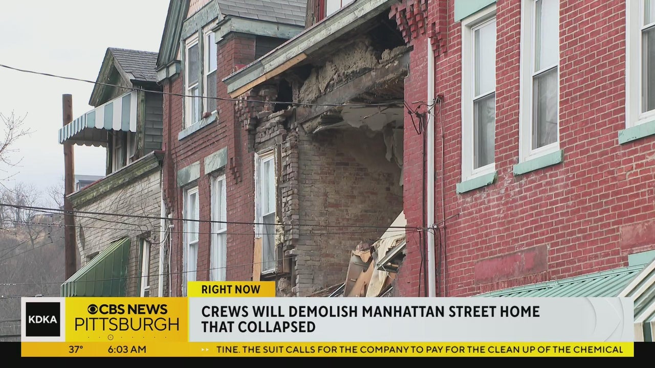 Crews in Pittsburgh are monitoring the weather as they prepare to tear down a home that partially collapsed on Thursday. KDKA's Chris DeRose has more.