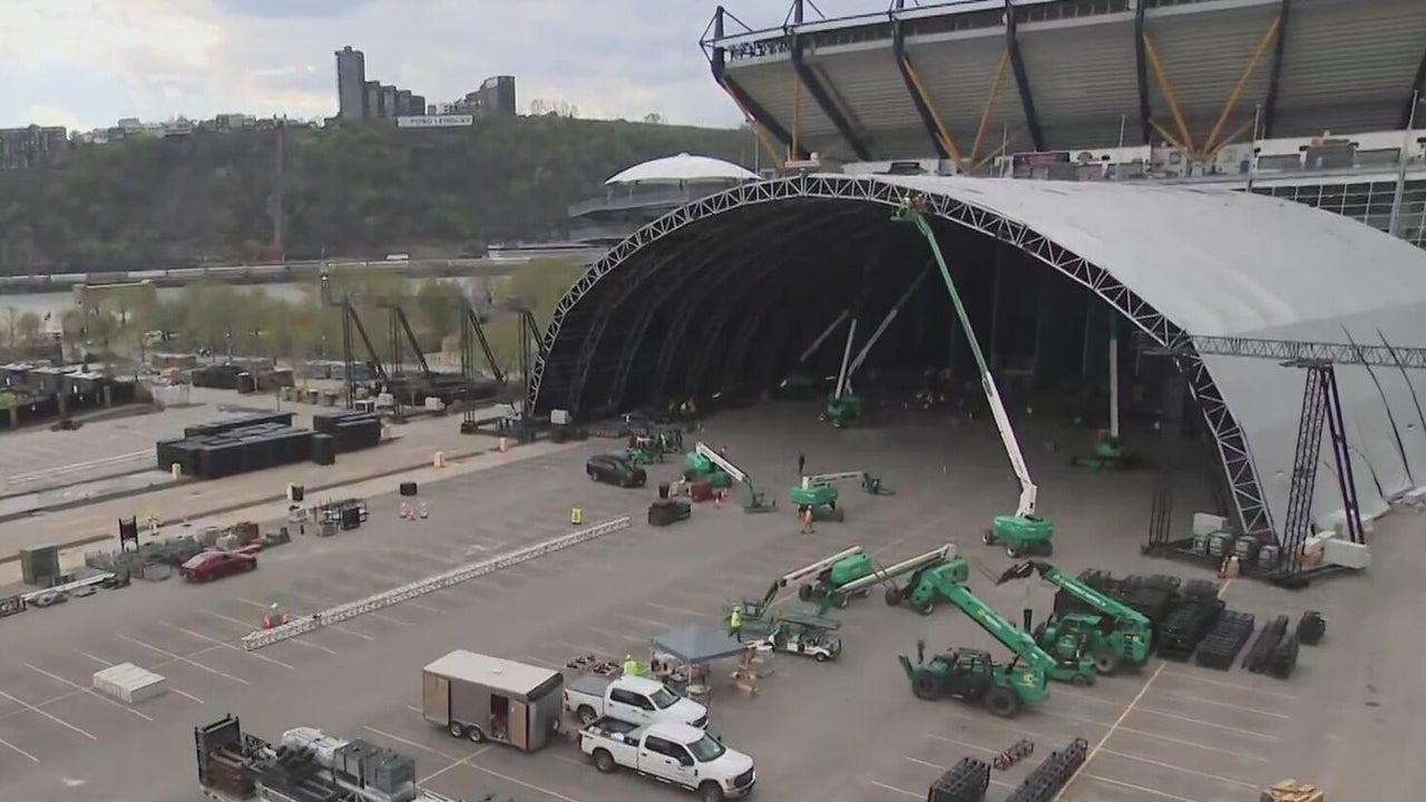 Crews are constructing the NFL draft stage outside of Acrisure Stadium on Pittsburgh's North Shore.