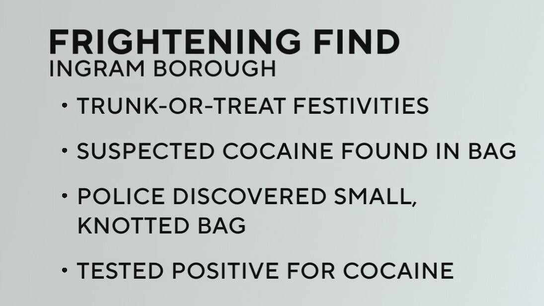 Ingram Borough Police say small cocaine bag was found in child's trick-or-treat bag