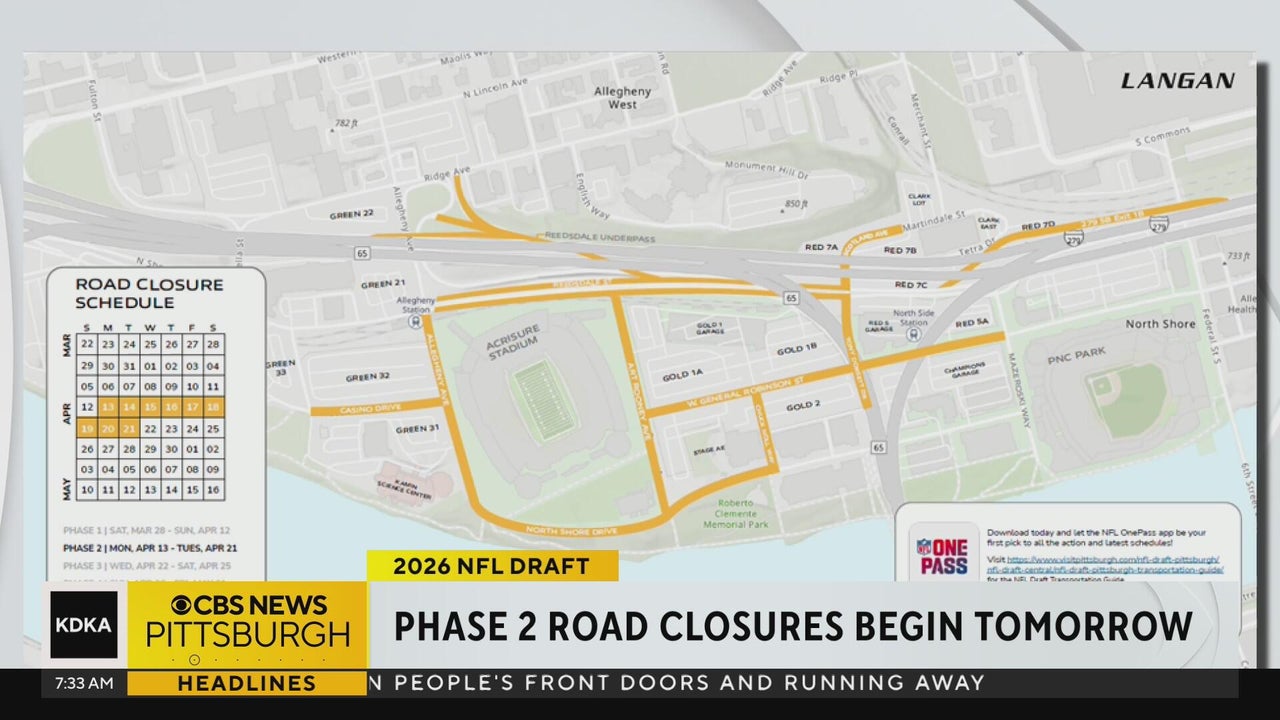 The second of six phases of road closures will go into place on Monday as Pittsburgh continues to prepare for the NFL draft. KDKA's Jessica Riley lets you know which roads will be closed on Monday.