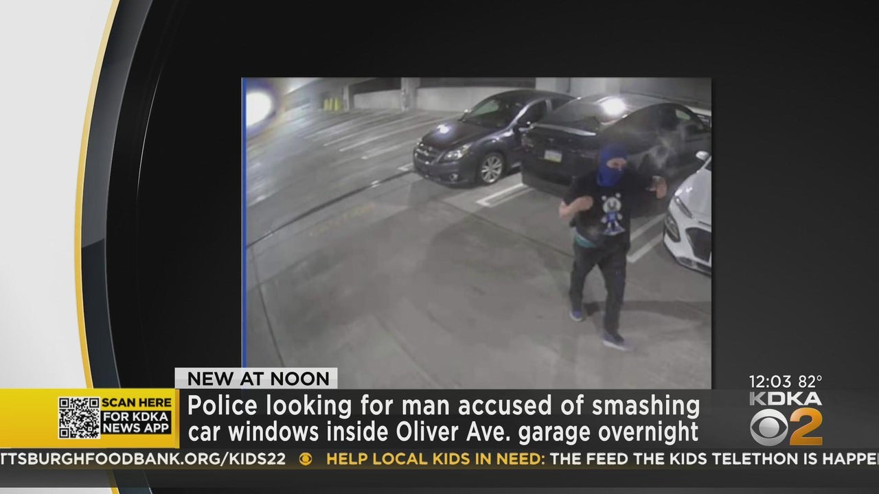 Pittsburgh Police are searching for a suspect who smashed in the windows of several vehicles inside the Oliver Avenue parking garage early on Wednesday morning.