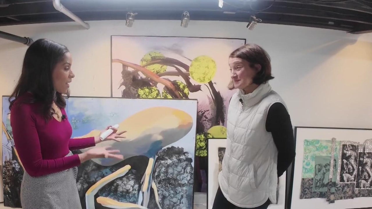 KDKA Investigator Andy Sheehan’s wife, Abby, is a talented artist. She shows Mikey Hood some of the pieces that will be on display at ZYNKA Gallery in Sharpsburg.