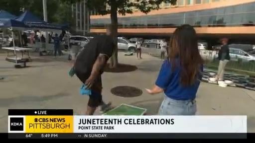 First Alert Meteorologist Mary Ours played cornhole during Pittsburgh's Juneteenth celebrations at Point State Park.