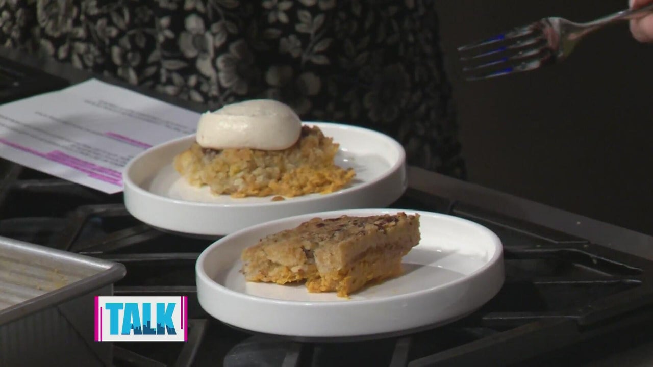 An alternative to pumpkin pie? Here's a recipe for pumpkin pecan crunch cake with maple whipped cream cheese frosting.