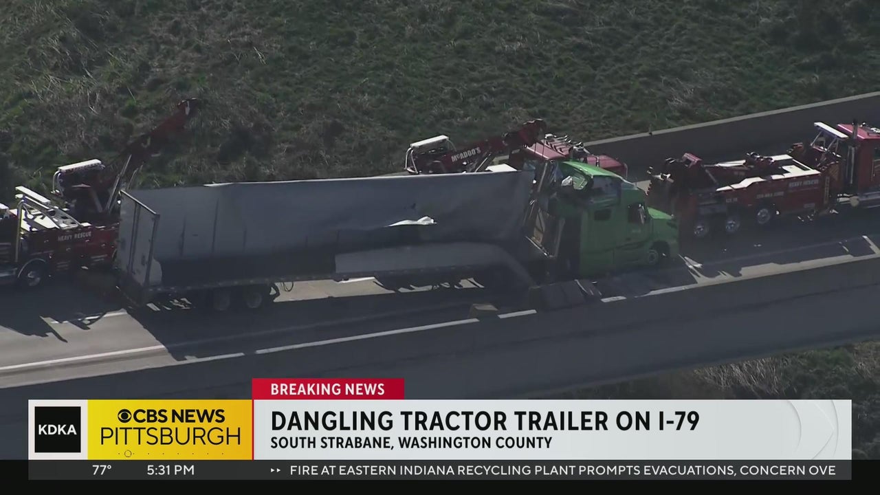 Tractor-trailer dangles from overpass in Washington County