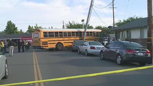 A school bus driver transporting students Tuesday evening was sent to the hospital after a crash in Galt Tuesday evening, officials said.