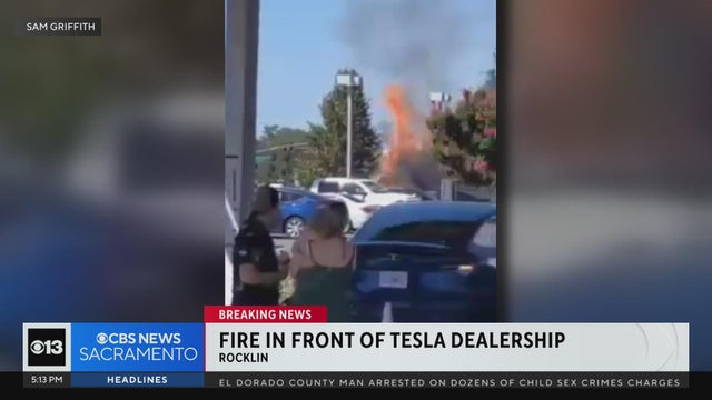 A couple of Teslas caught fire in front of a dealership in Rocklin on Wednesday.
