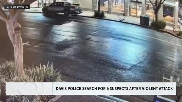 Police in Davis are searching for a half dozen suspects after two people were assaulted by the suspects wearing masks last week.
