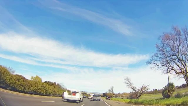Newly released dash camera footage shows the moment a wrong-way driver crashed into a California Highway Patrol vehicle in the Sacramento area on Wednesday.