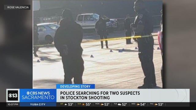 A search is on for a suspect after police said two people were shot and hospitalized in Stockton Friday afternoon.
