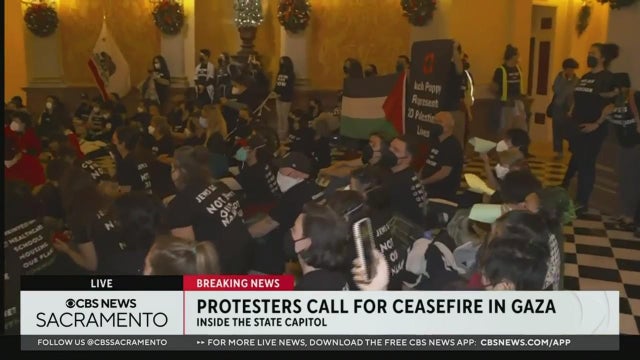 Protesters gathered at the State Capitol in Sacramento where they are calling for a ceasefire in Gaza.