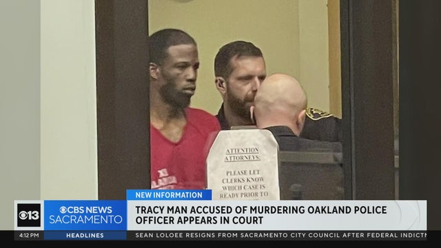 The Tracy man charged with murder in the shooting of an Oakland police officer appeared before a packed courtroom filled with members of the Oakland police force on Thursday.