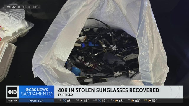 Three suspects were arrested after more than $40,000 of suspected stolen sunglasses from a Vacaville store were found in a vehicle on Friday, police said.