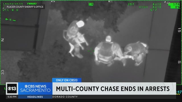 Video released exclusively to CBS13 shows the November 10 pursuit of two attempted burglary suspects that started in Placer County. The Placer County Sheriff's Office said those suspects are connected to an international theft group.