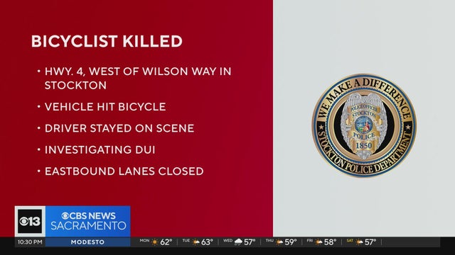 A bicyclist died after they were hit by a vehicle on Highway 4 in Stockton Sunday night, according to the CHP.