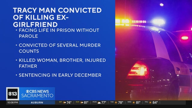 A Tracy man was convicted of the first-degree murder of his ex-girlfriend, her brother and the attempted murder of their father, prosecutors announced Friday.