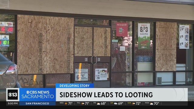 A Rio Linda 7-Eleven was looted by dozens of people Sunday after a nearby sideshow.
