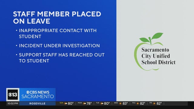 The staff member was placed on leave after allegedly having "inappropriate contact with a student," according to Sacramento Unified School District. The incident is under investigation.