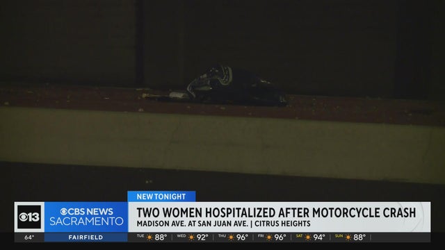 Two women were hospitalized after a motorcycle crash in the Citrus Heights area on Monday.