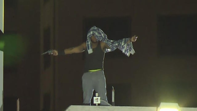 A man was seen waving a gun on top of a DOCO parking garage in downtown Sacramento Tuesday morning, prompting the closure of nearby streets as a precaution. Not long after an officer-involved shooting occurred. An officer was not injured. The condition of the man with the gun has unknown.