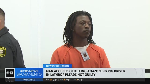 The man accused of shooting and killing an Amazon big rig driver in Lathrop pleaded not guilty to a first-degree murder charge Tuesday.